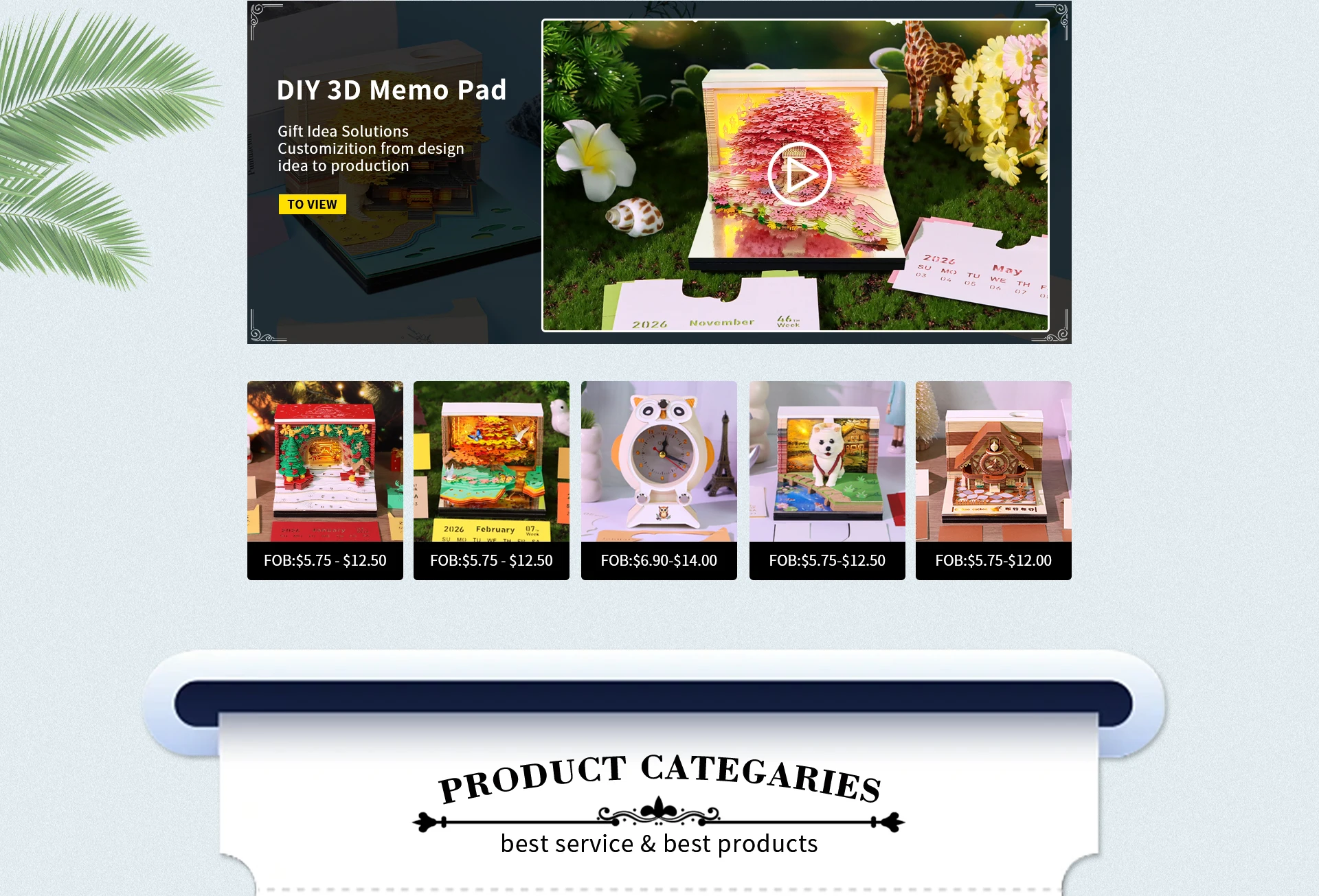 Ana ürünler:Kağıt kesim ışık kutusu, 3D Memo Pad, gece ışıkları, kitap ışık, kağıt el sanatları